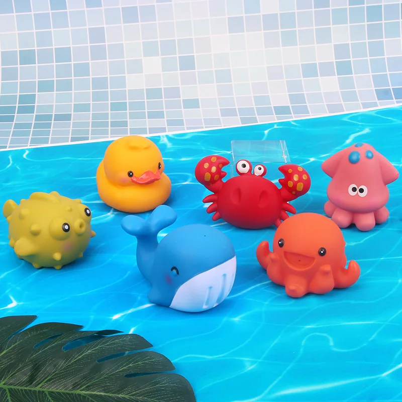 6pcsset Sea Animals Swimming Water Toys Mini Colorful Soft Floating Rubber Duck Squeeze Sound Funny Baby Bath Toys For Kids